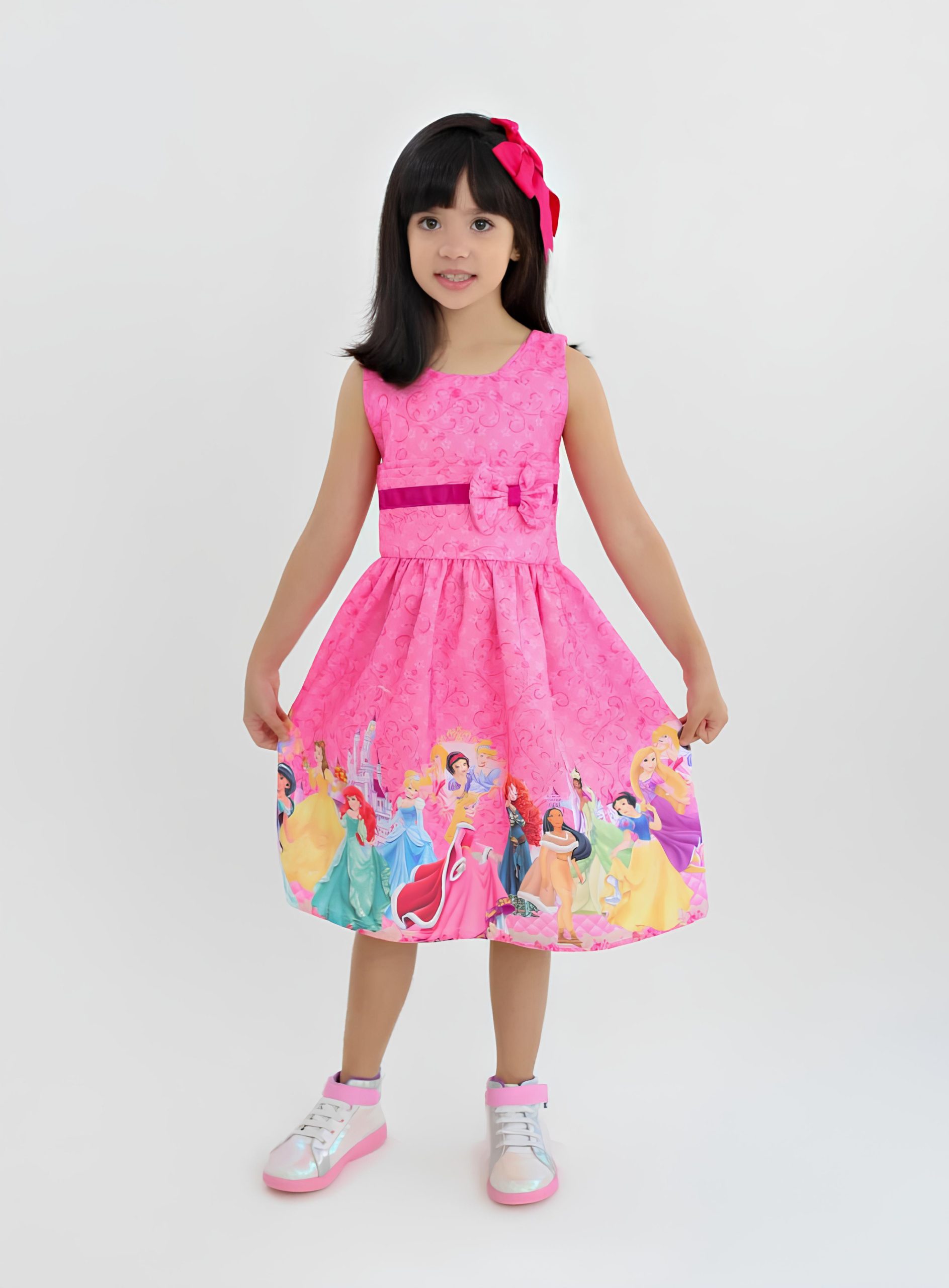 Vestido infantil em microfibra digital, com um charme todo especial: são 3 preguinhas delicadas no peito, fita de gorgurão e laço duplo bem estruturado, que deixam o visual elegante e cheio de cuidado em cada detalhe. A saia possui preguinhas que criam um leve rodado e um barrado diferenciado, enquanto o lastex nas costas se ajusta ao corpo, garantindo caimento perfeito e muito conforto para a criança brincar à vontade. 💖